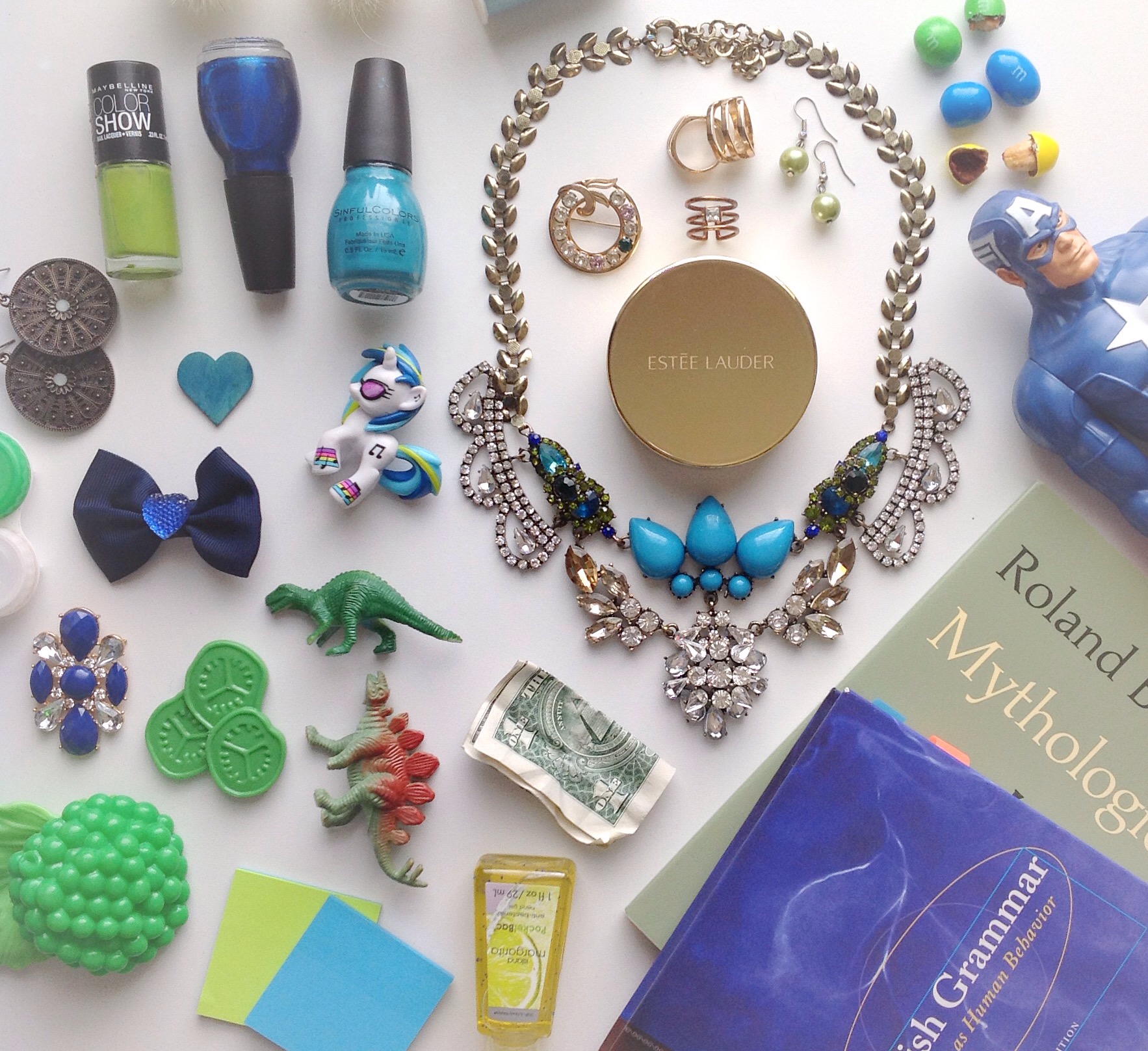 I find it amazing how my little family and I own such curious little objects. In my home I try hard to keep things organized, but let’s face it, it doesn’t stay that way for long. One of the things I like doing with my camera is gathering things that I find lying around and just laying them on my white parsons desk. It might be a childhood thing, but it reminds me of I Spy books. I used to love checking them out from the library at my elementary school.